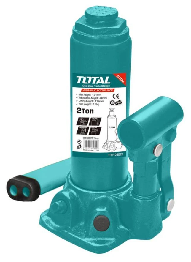 جك زجاجة زيت توتال أداة رفع قوية وموثوقة مصممة لتقديم أداء ثابت وآمن في رفع السيارات والمعدات الثقيلة. يعتمد على نظام هيدروليك بزيت عالي الكفاءة يوفر رفعًا سلسًا دون مجهود كبير، مع جسم متين يتحمل الضغط والاستخدام المتكرر. تصميمه العمودي يساعد على الاستخدام في المساحات الضيقة ويضمن ثباتًا ممتازًا أثناء الرفع.