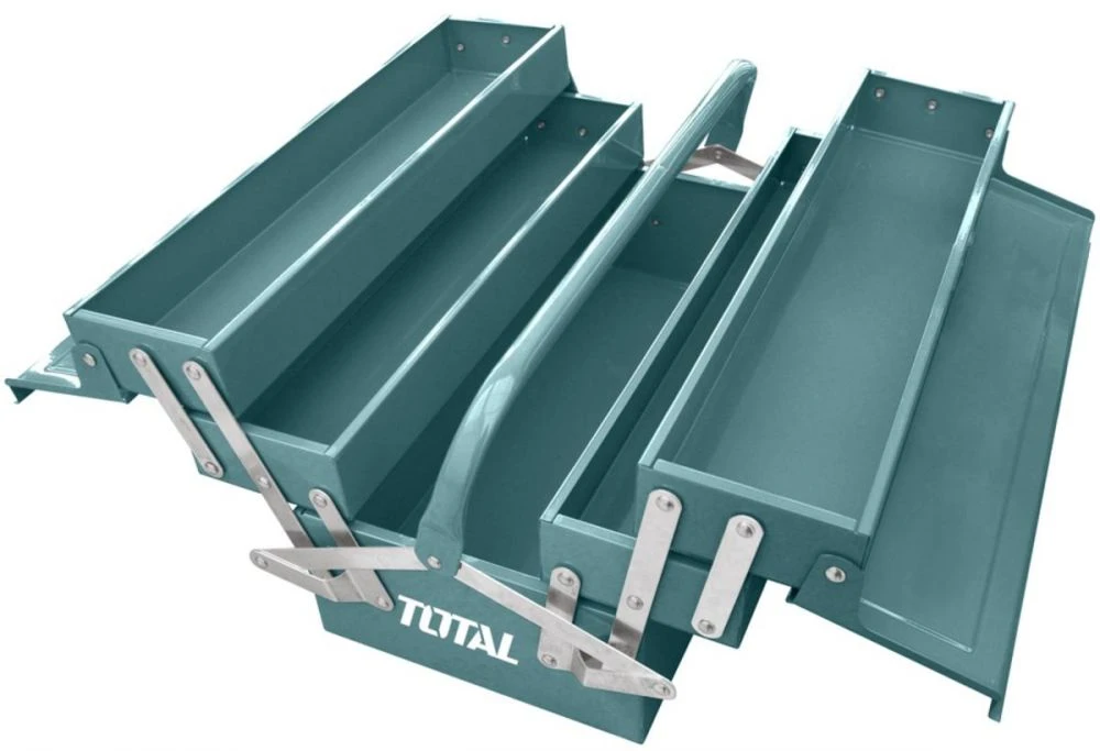 يوفر صندوق عدة حديد صغير توتال حلًا عمليًا وآمنًا لتنظيم الأدوات الأساسية مع الحفاظ على متانة عالية وسهولة الاستخدام.