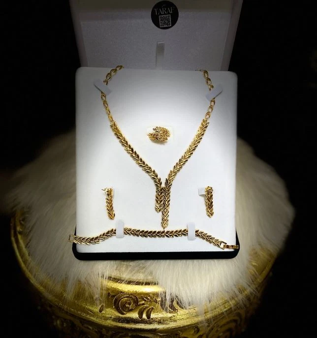 • طقم السنبلة من الدهب الروسي بتصميم أنيق مستوحى من شكل السنبلة الكلاسيكي، يعكس الفخامة والبساطة في آنٍ واحد.