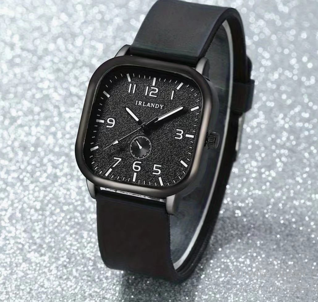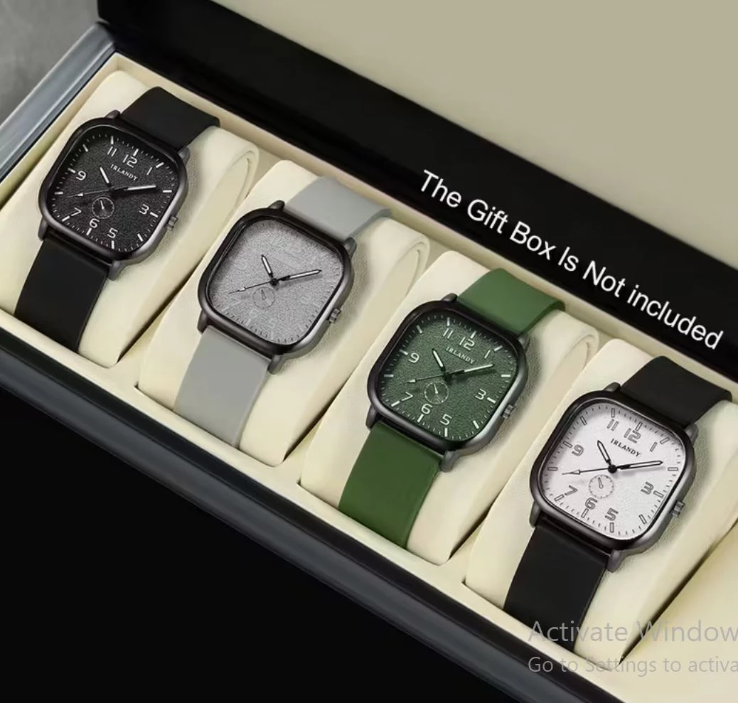 • طقم مكوّن من 4 قطع ساعات كوارتز مربعة بتصميم بسيط وعملي يناسب الرجال والنساء.